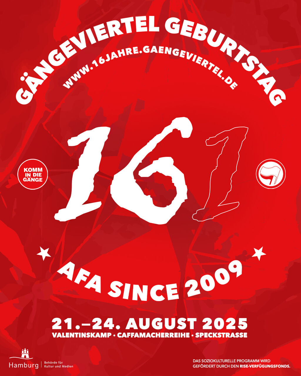 Eine detaillierte Übersicht des Programms auf allen Flächen gibt hier: https://16jahre.gaengeviertel.de!