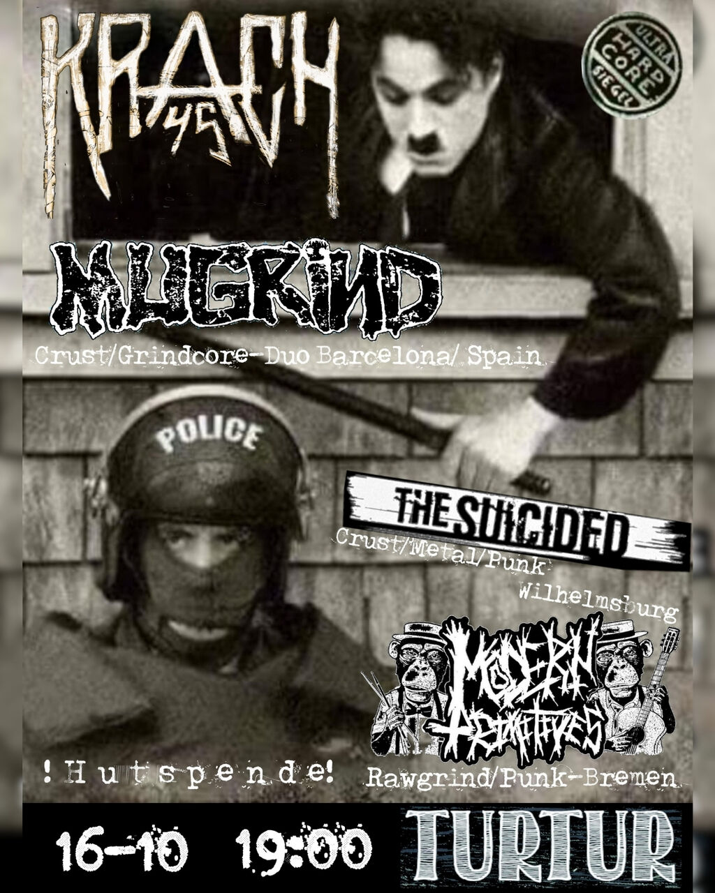 Es ist wieder so weit! Euch erwartet Punk & Grindcore mit Suicided aus Willy, Modern Primitives aus Bremen & Mugrind aus Barcelona.