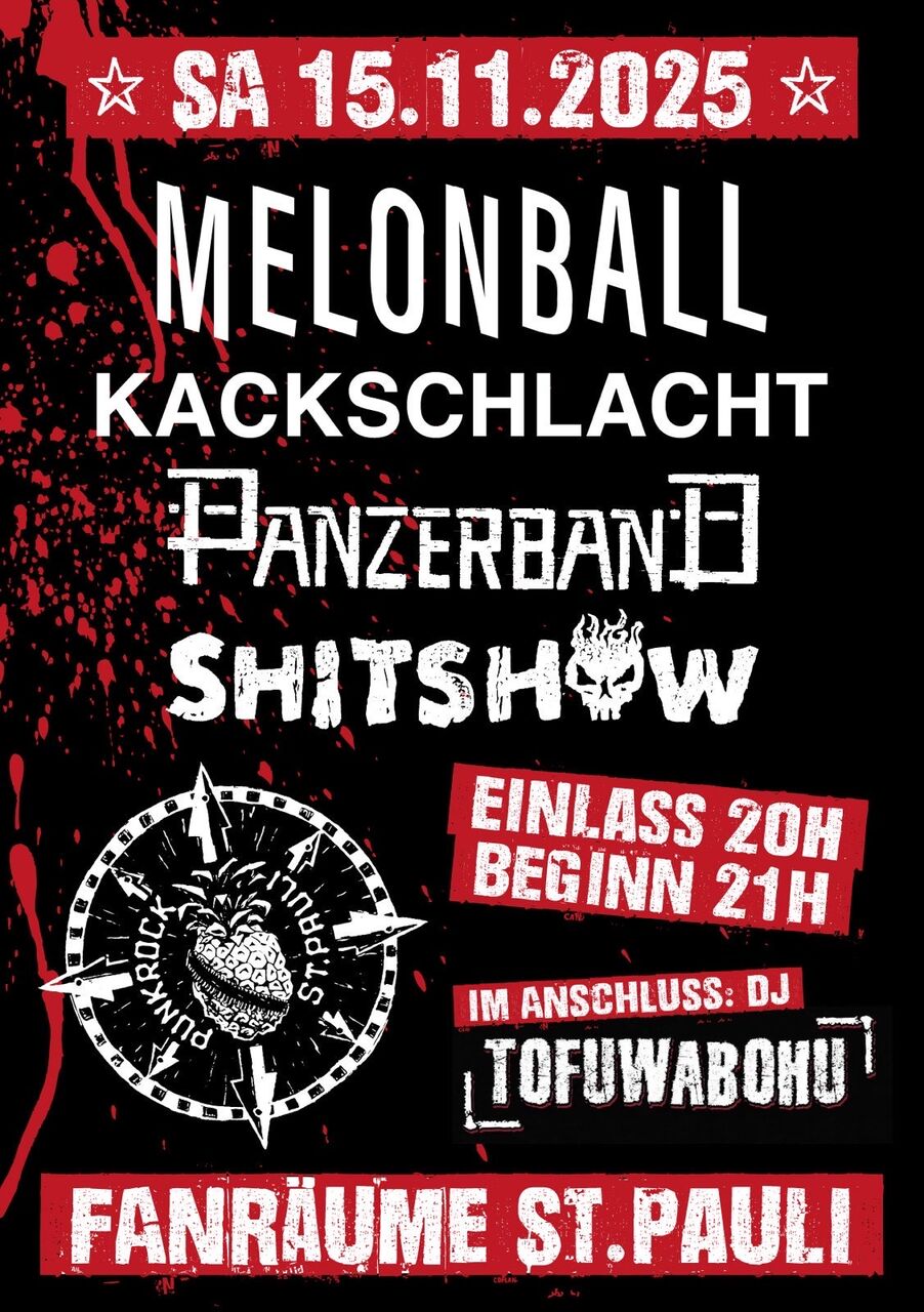 Konzert: Melonball, Kackschlacht, Panzerband und Shitshow. Im Anschluss Party mit DJ Tofuwabohu