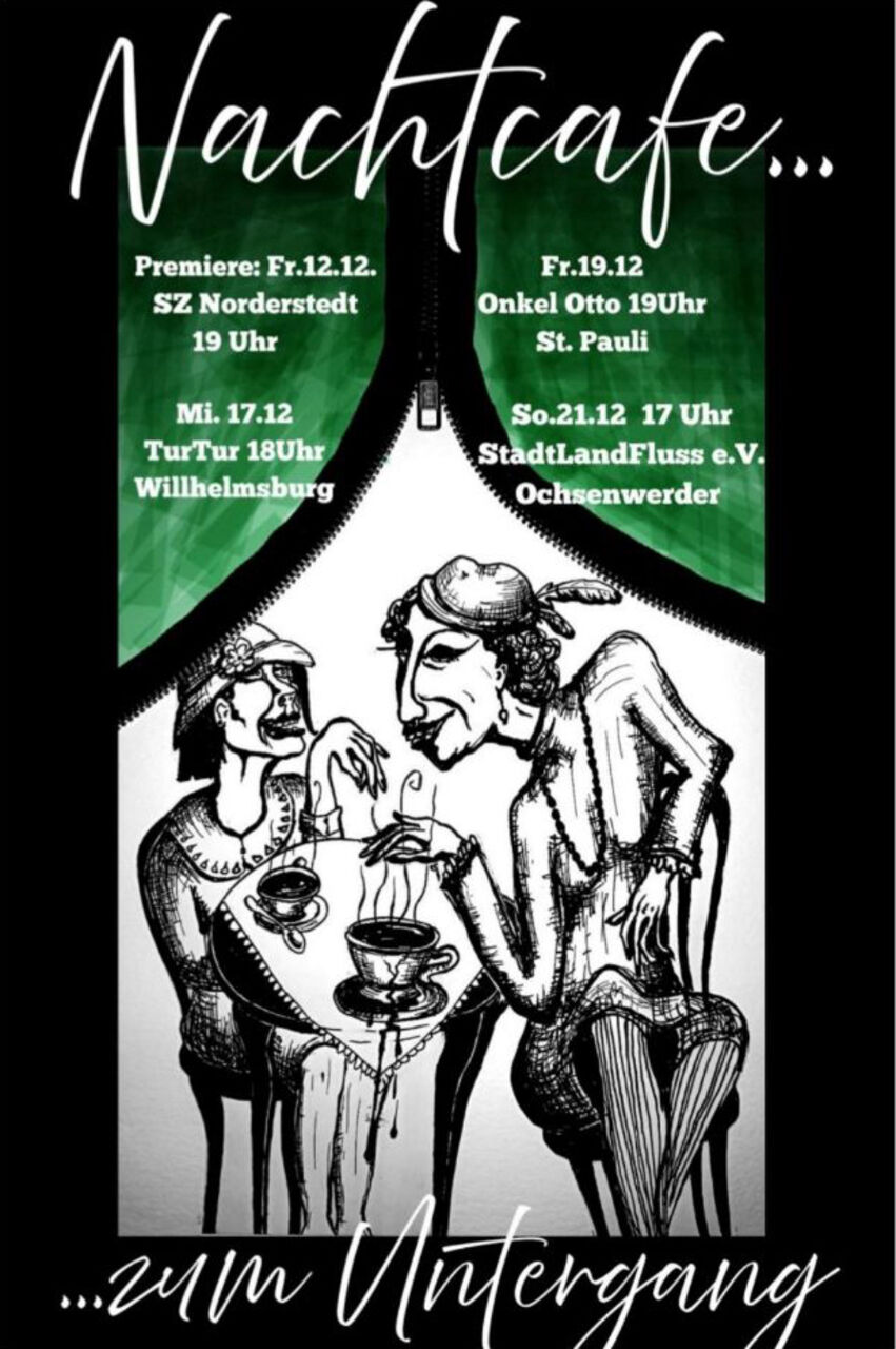 Wir schreiben kurz vor 1933. Im Theaterstück Nachtcafé zum Untergang spiegelt sich die Haltung bzw Nichthaltung der schweigenden Mehrheit im Angesicht des drohenden Verbrechens gegen die Menschlichkeit wider. Die Inszenierung basiert auf einer Collage von Texten und Gedichten der Schriftsteller Kurt Tucholsky, Erich Kästner und Walter Mehrung, die zur NS-Zeit gelebt und geschrieben haben.